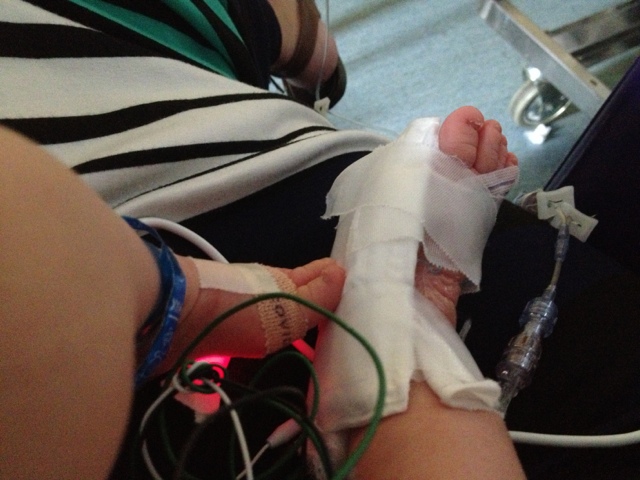 We were quickly taken to a room. Once in the room, three nurses came in to start checking on our sweet girl. The doctor came in shortly thereafter and lowered the boom on us. They would be taking a urine sample, inserting an IV, taking blood and doing a SPINAL TAP on our baby girl. Yes, you read that right. I pretty much lost it when he said this. He also told us that it was standard protocol to admit a newborn automatically for at least 48 hours. She would be put on antibiotics just in case the cultures came back positive.